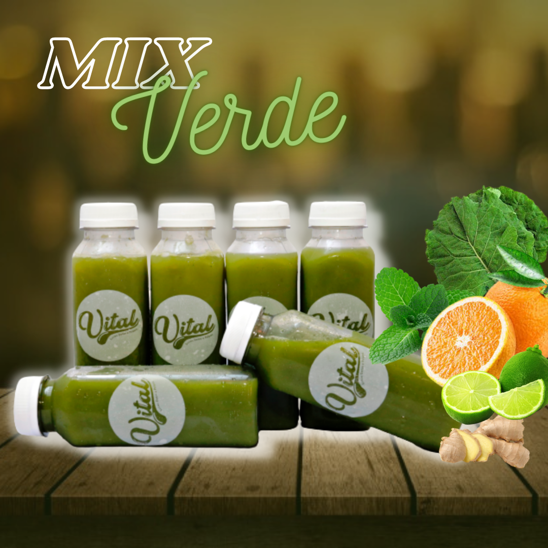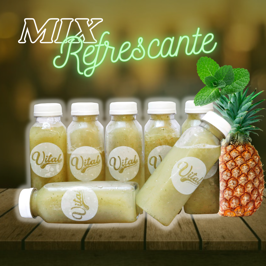 Trazem em sua composição frutas, legumes e hortaliças como: Laranja, Abacaxi, Maça, Couve, Cenoura, Gengibre, Beterraba, Limão, Maracujá e Sementes de Chia.